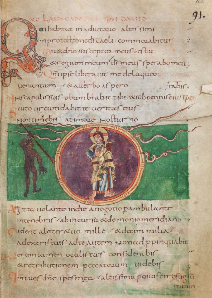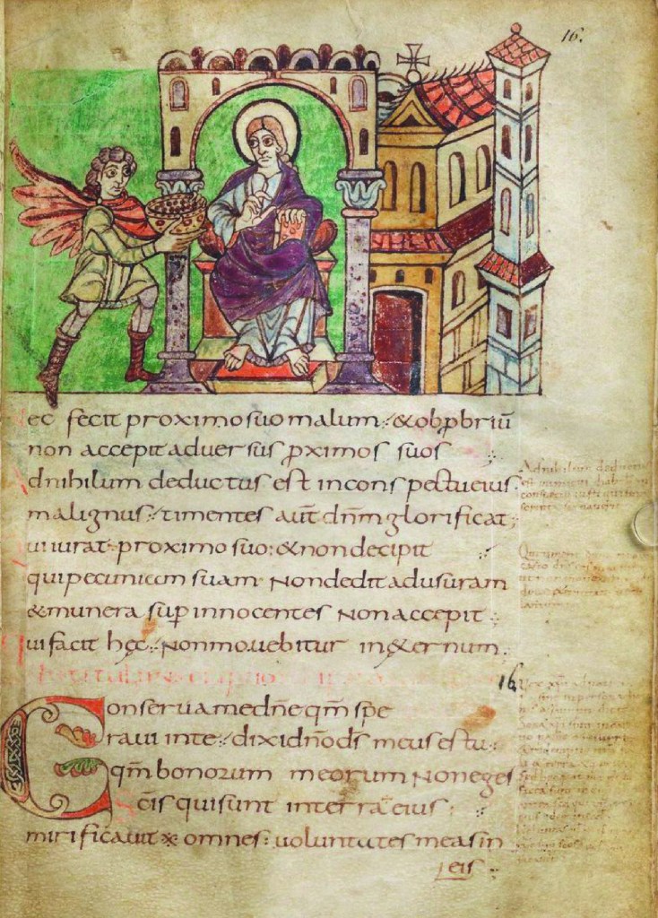 I have not ignored the Epistle reading for Fifth Sunday after Trinity, 1 Peter 3:8-15a. The verses are St. Peter’s advice to Christians on proper behaviour and draw strongly upon the Old Testament tradition, especially Psalm 15, illustrated in the Blog posting for Second Sunday after Trinity. On that occasion, the illumination from the Stuttgart Psalter (circa 820 A.D.) interprets Ps. 15:2-6, which answers the question posed in Ps. 15:1 and relates to the promise in verse 7. St. Peter’s words also reflect the teachings found in James 1:3 and James 3:5, 6 concerning practicing the virtue of restraining one’s tongue.
