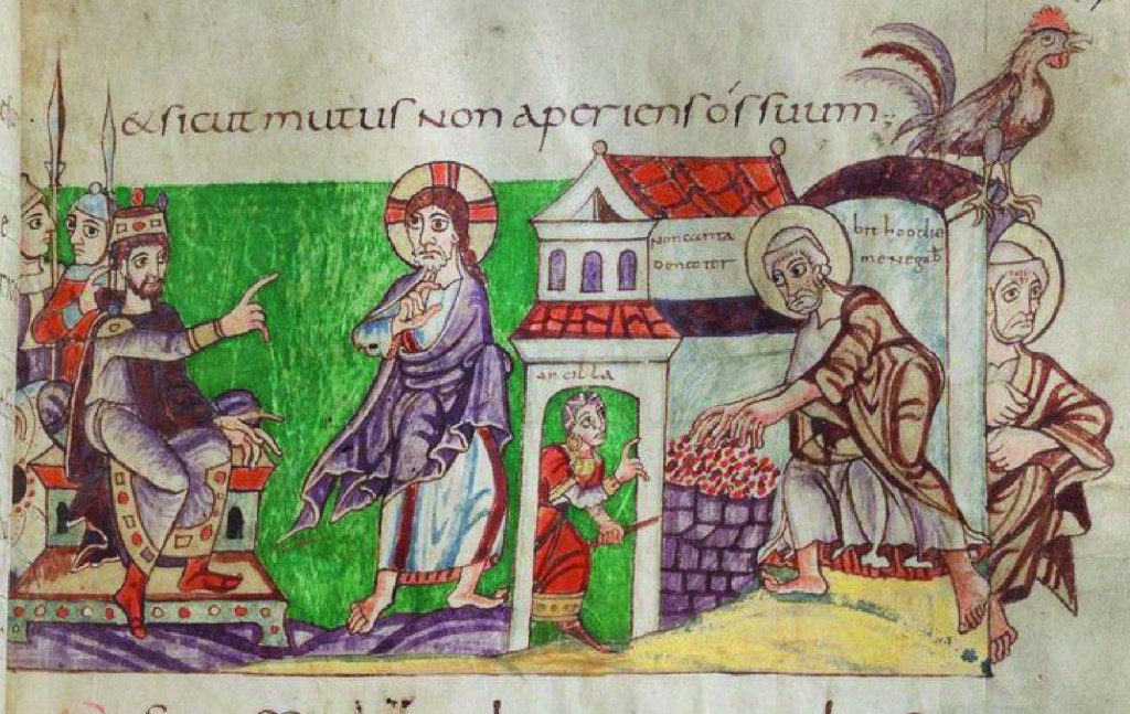 Detail, Christ Figure with King David, illustrating Ps. 38, Verse 15, Stuttgart Psalter, circa 820 A.D., Cod.bibl.fol.23, Folio 49r, Wurttembergische Landesbibliothek, Stuttgart, Germany. It appears on p. 106 in The Prayer Book Psalter: Picture Book Edition.
